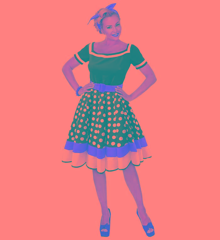 50’er Polkaprikket Kjole Kostume – Kjole$Bælte