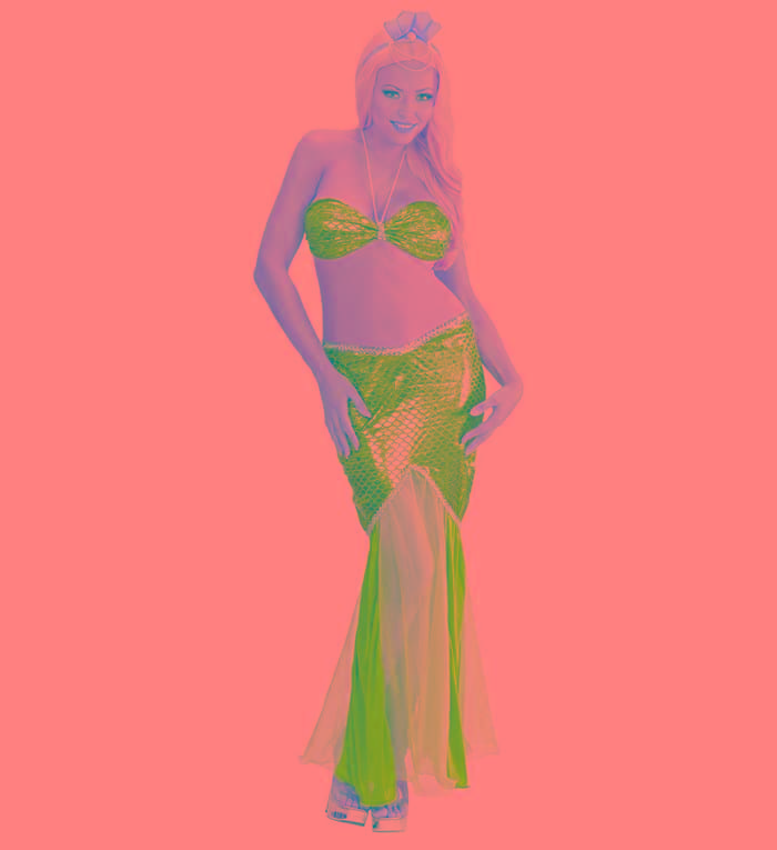 Havfrue Kostume – Kjole m. halskæde$ Hårbøjle