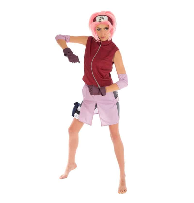 Naruto Shippuden® Sakura Kostume – Vest$Shorts$2 stk. Handsker$Hårbånd$2 stk. Albuebeskyttere$Lårhylster