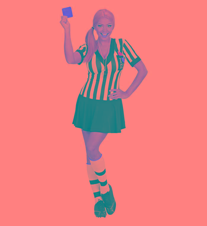 Sød Fodbolddommer Kostume – Kjole$ Fløje$ Gult kort$ Rødt kort