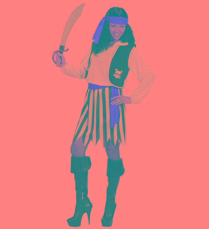 Stribet Sørøver Dame Kostume – Bluse M. Vest$Nederdel$Bælte$Hårbånd